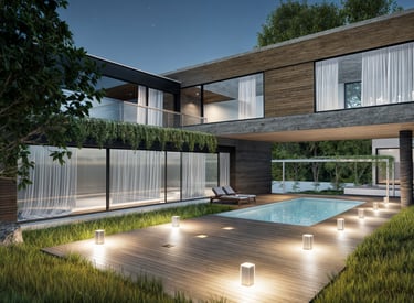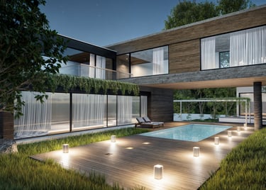 Renderizados hiperrealistas de espacios exteriores y jardines